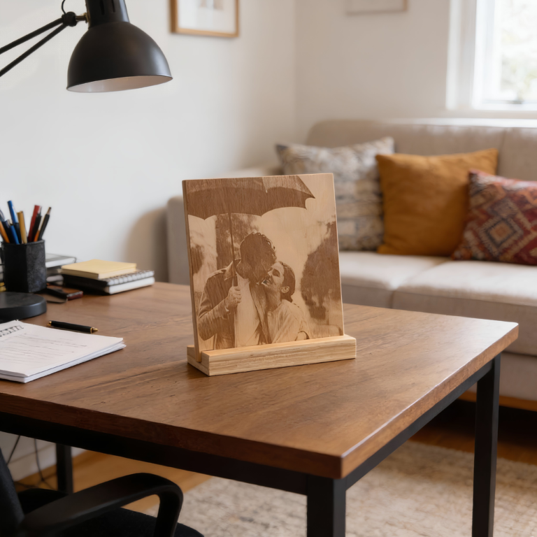 Shndërroni kujtimet tuaja në një dhuratë unike me gdhendje lazer të fotos personale (7×5 cm) në dru natyral, me magnet për vendosje të lehtë në çdo sipërfaqe metalike. Ideale për dhurata, dekor shtëpie ose zyrë. Porosit tani për personalizim të plotë!